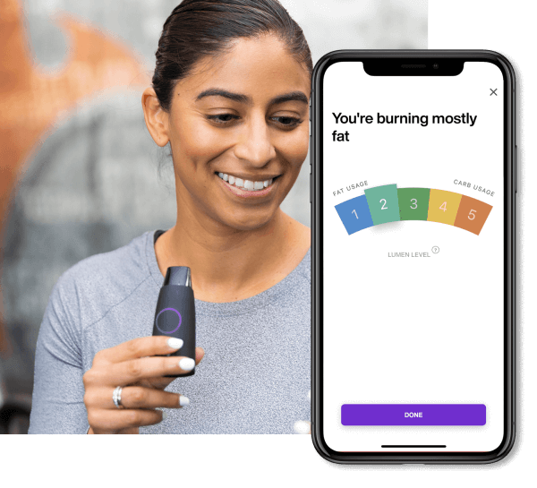 Lumen’s handheld gadget permits customers to investigate and monitor their metabolism with their smartphone. It reveals the physique’s present supply of power — fat or carbs — on a scale of 1 to five, based mostly on the respiratory trade ratio.
